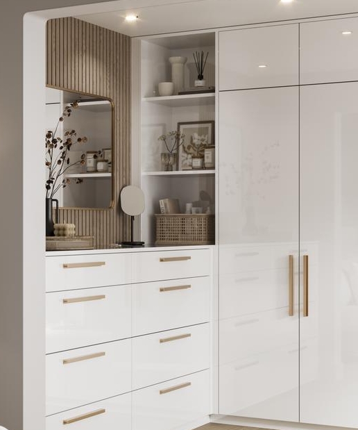 Discover our fitted bedrooms that combine style and practicality. Crafted with quality materials, these storage solutions offer a seamless blend of elegance and efficiency. Choose from modern high-gloss finishes or classic shaker styles to create a peaceful, clutter-free retreat tailored to your needs.